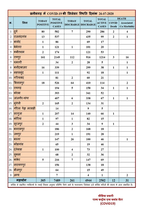 detail news only from Chhattishgarh ,dated: २६ जुलाई २०२०