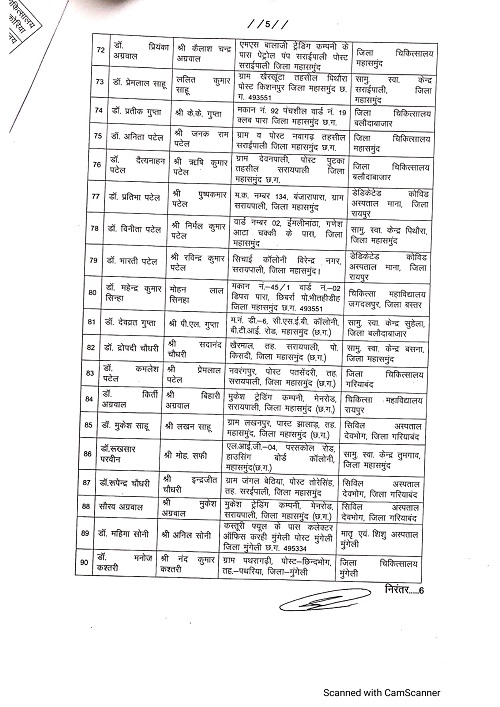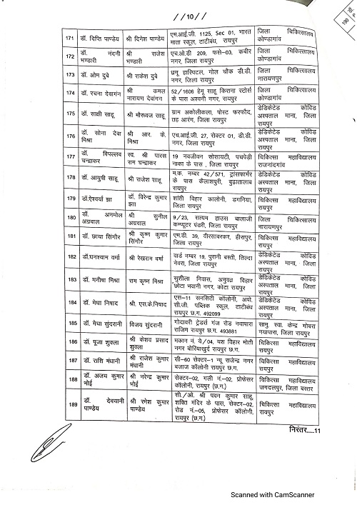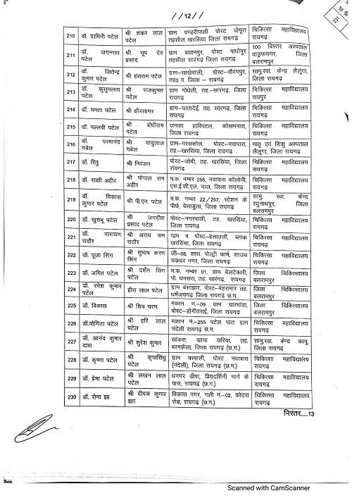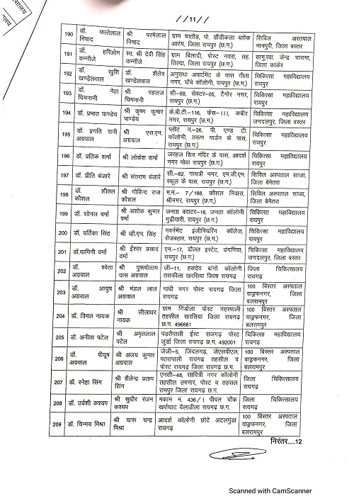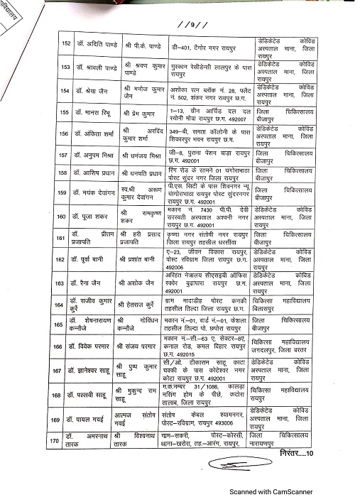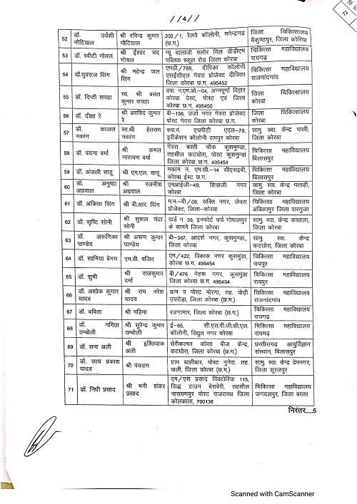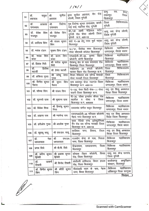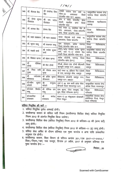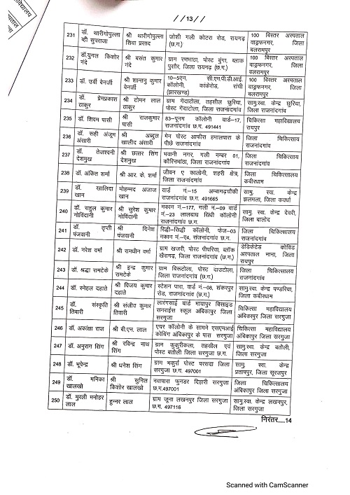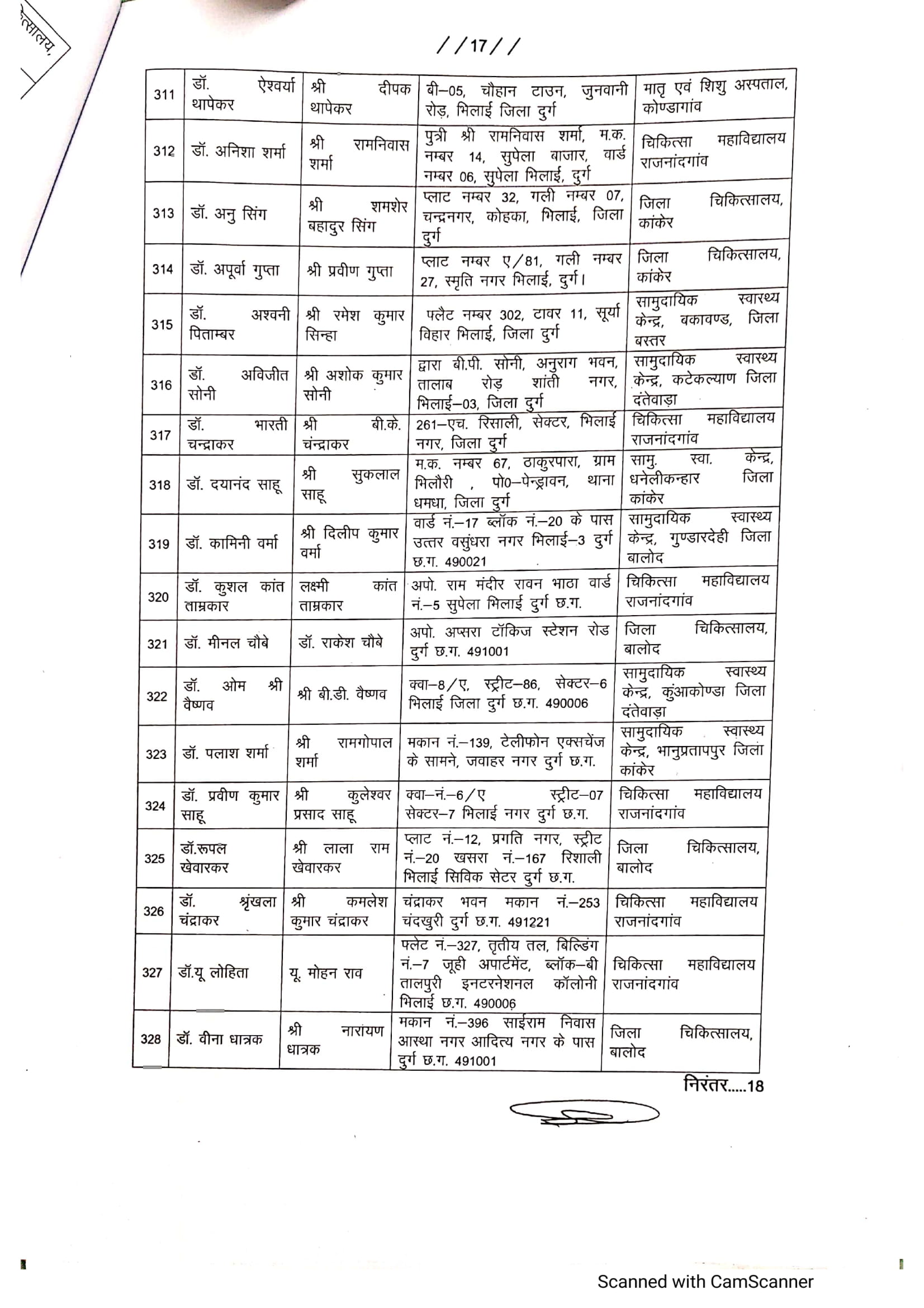 स्वास्थ्य एवं परिवार कल्याण विभाग द्वारा जारी डॉक्टरों की सूची एवं उनके पदस्थापना स्थल इस प्रकार हैं