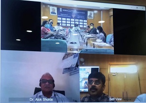 वीडियो कांफ्रेंसिंग में राज्य में स्कूल शिक्षा विभाग के प्रमुख सचिव डॉ. आलोक शुक्ला के द्वारा छत्तीसगढ़ में चल रहे नवाचारी कार्यक्रम ’पढ़ई तुंहर दुआर’ की गतिविधियों के विषय में प्रभावी ढंग से प्रस्तुती दी। समग्र शिक्षा के मिशन संचालक श्री जितेन्द्र शुक्ला ने पॉवर पॉइंट प्रेजेंटेशन के माध्यम से कार्यक्रम के विभिन्न पहलुओं पर प्रकाश डाला। श्री जितेन्द्र शुक्ला ने प्रस्तुतीकरण में बताया कि छत्तीसगढ़ के परिप्रेक्ष्य में जहां बहुत से नेटवर्कविहीन क्षेत्र और स्मार्टफोन रहित आबादी है, वहीं पर विभिन्न वैकल्पिक तरीकों जैसे - मोटरसाईकल गुरूजी, ब्लूटूथ फोन, ऑडियो सामग्री, टेलीविजन के माध्यम से बच्चों के लिए शिक्षा व्यवस्था को सुचारू रूप से संचालित करने के लिए विभिन्न नवाचारी सुझाव दिए। लगभग 3 घंटे चली इस ऑनलाइन बैठक में केन्द्र के वरिष्ठ अधिकारियों के साथ ही राज्य शासन के स्कूल शिक्षा विभाग के अधिकारियों भी उपस्थित रहे। बैठक में लॉकडाउन के चलते बच्चों के अध्ययन-अध्यापन की निरंतरता के लिए चर्चा की गई। राज्य की वर्तमान परिस्थितियों खासतौर पर नक्सल प्रभावित क्षेत्रों सहित अन्य विषयों पर विस्तार से समीक्षा की गई।