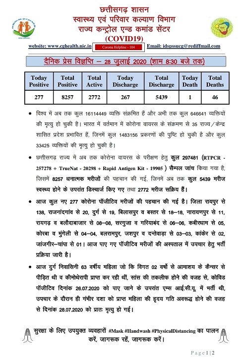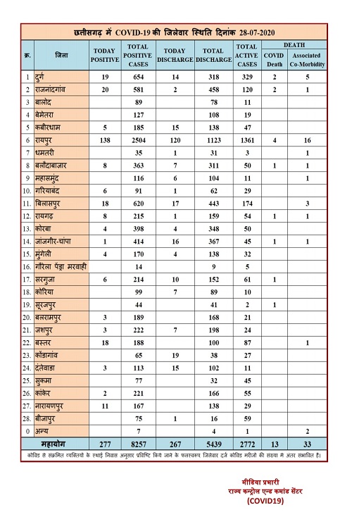 detail news only from Chhattishgarh ,dated: २८ जुलाई २०२०