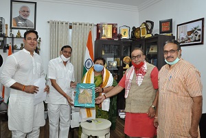 राज्यपाल सुश्री अनुसुईया उइके से आज यहां राजभवन में पूर्व मंत्री श्री चन्द्रशेखर साहू के नेतृत्व में प्रतिनिधिमण्डल ने सौजन्य मुलाकात की। उन्होंने राज्यपाल को ग्राम धमधा के कलाकारों द्वारा बनाए गए कांसे और पीतल के बर्तन और धान की बाली भेंट की। प्रतिनिधिमण्डल में पूर्व विधायक श्री लाभचंद बाफना, श्री संदीप शर्मा और श्री गौरीशंकर श्रीवास शामिल थे।