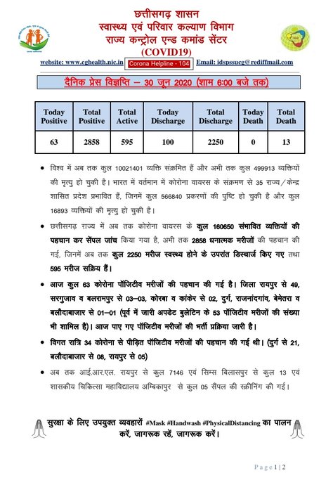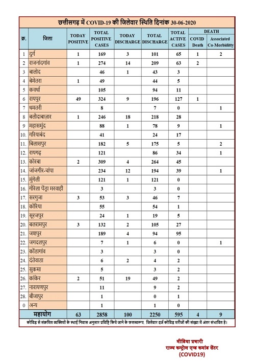 detail news only from Chhattishgarh ,dated: ३० जून २०२०