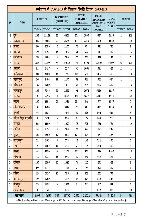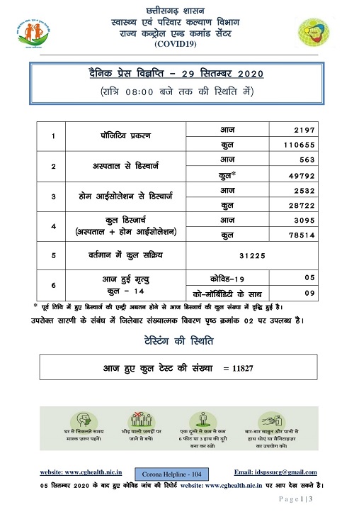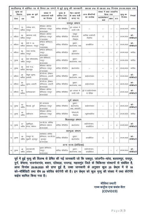 detail news only from Chhattishgarh ,dated: ३० सितम्बर २०२०
