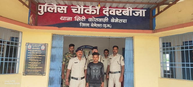 पुलिस अधीक्षक श्रीमती भावना गुप्ता (भा.पु.से.) के निर्देशन एवं अतिरिक्त पुलिस अधीक्षक पंकज पटेल, एसडीओपी बेमेतरा मनोज तिर्की के मार्गदर्शन में थाना/चौकी प्रभारियो के द्वारा थाना/चौकी में पंजीबद्ध गंभीर अपराधों में फरार आरोपियों को पकड़ने हेतु विशेष अभियान चलाया जा रहा है जिसके तहत पुलिस चौकी देवरबीजा स्टाफ के द्वारा पुलिस चौकी देवरबीजा, थाना बेमेतरा के अपराध सदर धारा 376, 376(2) भादवि, 4,5 (ठ)6 पाक्सो एक्ट में शादी का प्रलोभन देकर नाबालिक के साथ जबरदस्ती दुष्कर्म करने वाला फरार आरोपी अजय पटेल पिता अरूण कश्यप उम्र 21 साल थाना पिपरिया जिला कबीरधाम को आज दिनांक 02.07.2023 को विधिवत गिरफ्तार कर न्यायिक रिमांड पर भेजा गया।