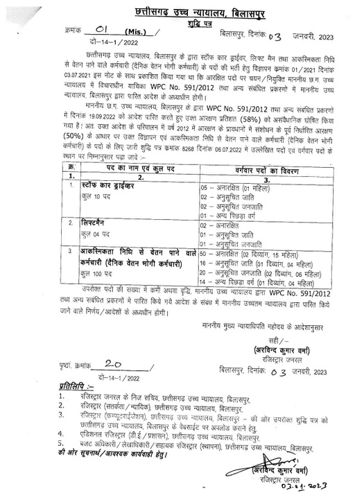 छत्तीसगढ़ उच्च न्यायालय के आदेश से आरक्षण के अनुपात पर घमासान जारी है। मुख्यमंत्री भूपेश बघेल ने तीन जनवरी को रायपुर के जन अधिकार महारैली में कहा था कि हाईकोर्ट के आदेश के बाद छत्तीसगढ़ में आरक्षण शून्य हो गया है। यानी किसी वर्ग को आरक्षण का लाभ नहीं मिल सकता। ठीक उसी दिन छत्तीसगढ़ उच्च न्यायालय ने एक प्रशासनिक आदेश में शुद्धिपत्र जारी किया। इसके जरिए हाईकोर्ट में 114 पदों पर भर्ती के लिए अनुसूचित जाति को 16%, अनुसूचित जनजाति को 20% और अन्य पिछड़ा वर्ग को 14% आरक्षण का फॉर्मुला लागू कर दिया।
