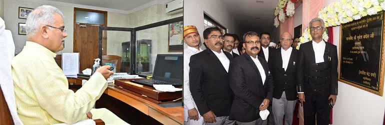 मुख्यमंत्री श्री भूपेश बघेल ने आज यहां अपने निवास कार्यालय से वीडियो कॉन्फ्रेंस के माध्यम से बिलासपुर हाईकोर्ट परिसर स्थित महाधिवक्ता कार्यालय के नवनिर्मित द्वितीय तल का लोकार्पण किया। इस कार्यालय भवन के द्वितीय तल का निर्माण 1 करोड़ 65 लाख 86 हजार रूपए की लागत से पूर्ण किया गया है।महाधिवक्ता कार्यालय बिलासपुर से छत्तीसगढ़ के एडवोकेट जनरल श्री सतीश चंद्र वर्मा, अतिरिक्त महाधिवक्ता श्री अमृतो दास, श्री सुनील ओटवानी, श्री चन्द्रेश श्रीवास्तव, श्रीमती मीना शास्त्री और श्री राघवेन्द्र प्रधान सहित विधि अधिकारी तथा कार्यालयीन अधिकारी-कर्मचारी वीडियो कॉन्फ्रेंसिंग के माध्यम से इस कार्यक्रम से जुड़ेे।
