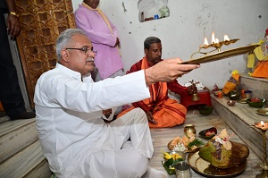 मुख्यमंत्री श्री भूपेश बघेल आज भेंट-मुलाकात कार्यक्रम के दौरान रायगढ़ जिले के लैलूंगा विधानसभा क्षेत्र के ग्राम राजपुर पहुंचे। उन्होंने वहां ग्राम राजपुर में स्थित श्री जगन्नाथ मंदिर में भगवान जगन्नाथ, बलभद्र एवं माता सुभद्रा की पूजा अर्चना की प्रदेश की सुख-समृद्धि की कामना की। मुख्यमंत्री का भेंट-मुलाकात स्थल में स्थानीय महिलाओं ने हाथ से बने कांसा घास और धान बाली का हैट पहनाकर स्वागत किया। मुख्यमंत्री ने साड़ी देकर हैट बनाने वाली महिलाओं को किया सम्मानित किया। इस अवसर पर कदम्ब का पौधा लगाया।