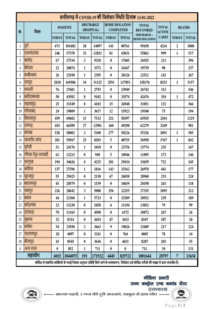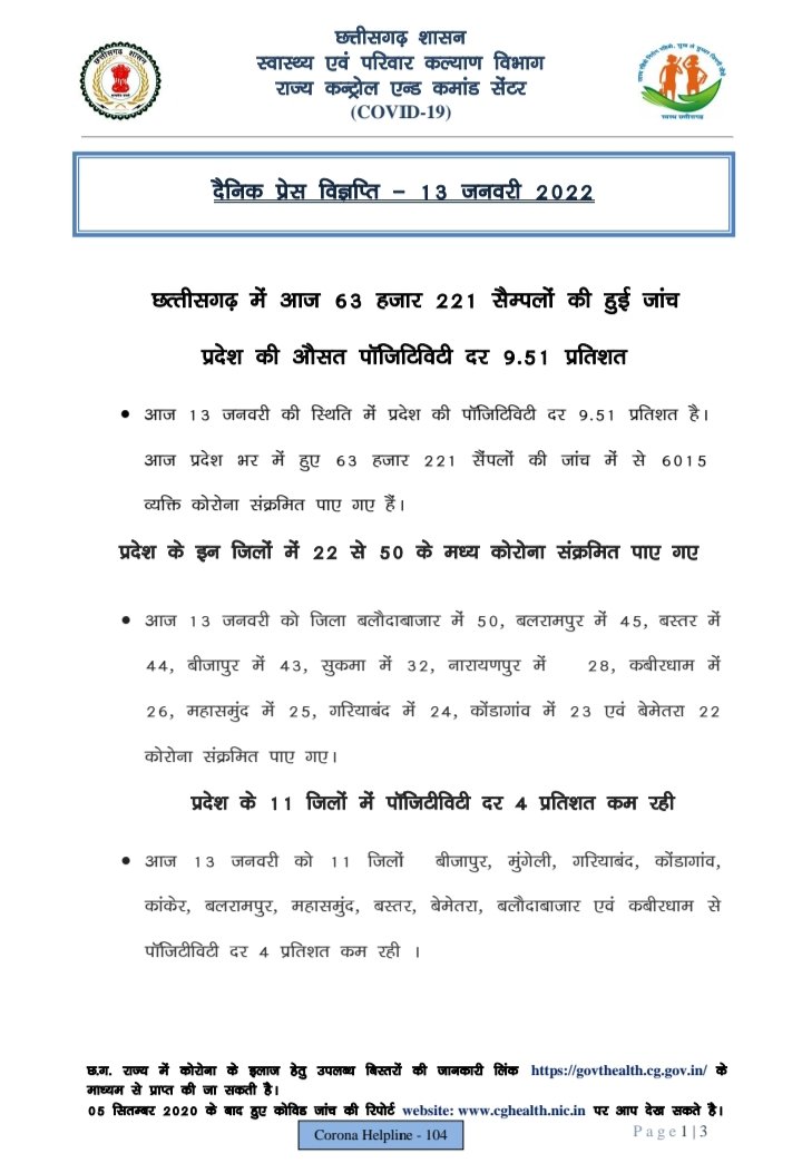 छत्तीसगढ़ प्रदेश : 13/Jan/2022
