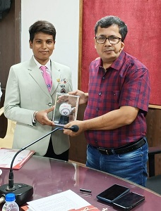 कलेक्टर श्री संजीव कुमार झा ने आज कलेक्टोरेट सभाकक्ष में बेसबॉल फेडरेशन ऑफ एशिया द्वारा हांगकांग में आयोजित प्रतियोगिता में भाग लेने वाली जिले की खिलाड़ी सुश्री नेहा जायसवाल का सम्मान किया। कलेक्टर श्री झा ने नेहा का उत्साहवर्धन करते हुए उन्हें भविष्य में बेहतर खेल प्रदर्शन कर जिले एवं प्रदेश का नाम रौशन करने के लिए शुभकामनाएं दी। सुश्री नेहा ने भी जिला प्रशासन से मिले के सहयोग के लिए कलेक्टर श्री झा के प्रति आभार व्यक्त करते हुए धन्यवाद दिया।