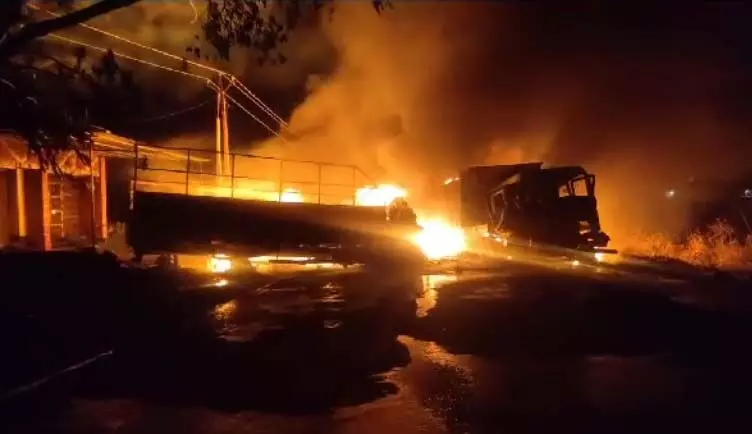 🌐 हाइवा और माजदा में जोरदार टक्कर..फिर लगी आग🌐