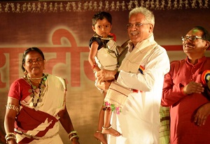 मुख्यमंत्री ने भी बजाया मुंडा बाजा, मिलाया ताल से ताल नन्ही कलाकार को गोद में उठाया, किया प्रोत्साहित,बस्तर बैंड की धुन पर झूमे मुख्यमंत्री श्री भूपेश बघेल