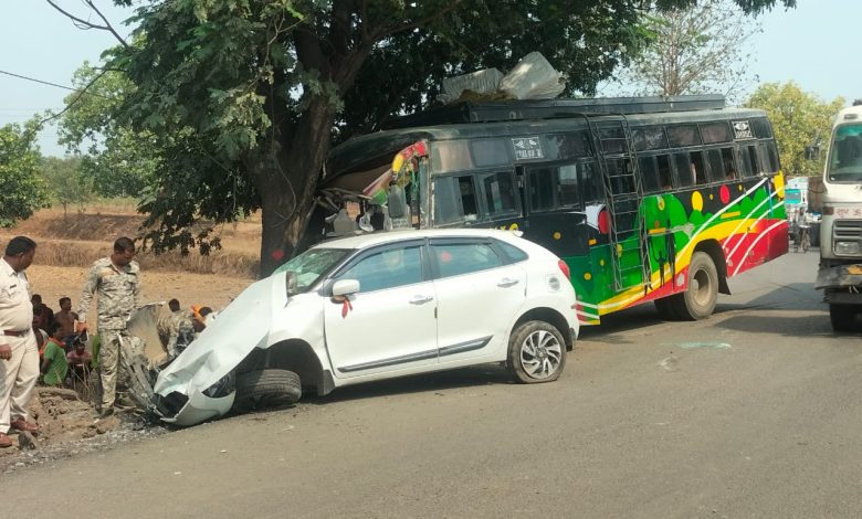 🌐 रायगढ़ से कुनकुरी जा रही अवतार बस ने बलेनो को रगड़ती हुई पेड़ से टकराई🌐