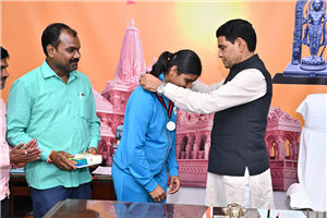 खेल मंत्री श्री टंक राम वर्मा के निवास कार्यालय में आज तलवारबाजी खिलाड़ी रूपाली साहू ने सौजन्य मुलाकात की। रुपाली साहू और रीबा बेन्नी ने 12 से 19 जुलाई, 2024 तक क्राईस्टचर्च न्यूजीलैण्ड में सम्पन्न जूनियर कॉमनवेल्थ तलवारबाजी प्रतियोगिता में भारतीय टीम को सिल्वर पदक दिलाया। खेल मंत्री ने इनके शानदार प्रदर्शन की सराहना करते हुए कहा कि छत्तीसगढ़ की बेटियों ने राज्य का ही नहीं अपितु देश का मान बढ़ाया है। उन्होंने कहा कि राज्य में सभी खेल विधाओं के लिए सकारात्मक वातावरण तैयार किया जा रहा है। खेल मैदानों को उन्नत कर सभी आवश्यक सुविधाएं उपलब्ध कराई जा रही है।