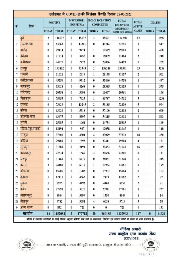 छत्तीसगढ़ प्रदेश : 28/Mar/2022