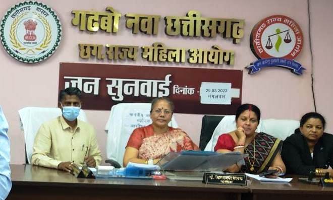 राज्य महिला आयोग की अध्यक्ष डॉ. किरणमयी नायक एवं सदस्य सुश्री शशिकांता राठौर एवं श्रीमती अर्चना उपाध्याय की उपस्थिति में आज शास्त्री चौक स्थित, राज्य महिला आयोग कार्यालय में महिलाओं से संबंधित शिकायतों के निराकरण के लिए सुनवाई की गई।