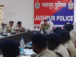 लिस अधीक्षक जशपुर श्री विजय अग्रवाल (भा.पु.से.) द्वारा कार्यालय में दिनांक 29.03.2022 को क्राईम मीटिंग आयोजित की गई, जिसमें जिले के समस्त राजपत्रित पुलिस अधिकारी एवं थाना/चौकी प्रभारी शामिल हुये। मीटिंग में पुलिस अधीक्षक द्वारा गांजा और मादक पदार्थो के तस्करों पर कड़ी कार्यवाही करने के निर्देश दिये गये। पेडिंग अपराधों की समीक्षा उपरांत प्रकरण के फरार आरोपियों को शीघ्र गिरफ्तार करने हेतु निर्देशित किया गया। महिलाओं एवं बच्चों से संबंधित अपराधों के फरार आरोपियों का लगातार पता-तलाश कर उनकी गिरफ्तारी हेतु निर्देशित किया गया। ठगी, धोखाधड़ी के प्रकरण में फरार आरोपियों की लगातार पता-तलाश कर टीम भेजकर गिरफ्तारी कार्यवाही करने हेतु निर्देशित किया गया।