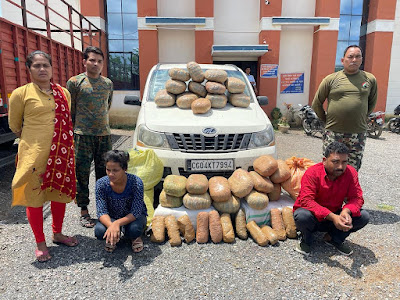 मुखबीर से सूचना मिली कि बरगढ ओड़िशा से अवैध मादक पदार्थ गांजा का बडा खेप एक सफेद रंग के जायलो कार में ओडिशा से महासमुन्द होते हुये रायपुर छत्तीसगढ में लाने वाला है। जिस पर तत्काल पुलिस अधीक्षक महासमुन्द धर्मेन्द्र सिंह के द्वारा थाना सिंघोडा प्रभारी एवं सायबर सेल की टीम को त्वरित कार्यावाही करने हेतु निर्देशित किया व महासमुंद जिले में प्रवेश करने वाले समस्त पाईंटों पर भी बल तैनात कर संदिग्ध वाहन की जांच कर रही थी तभी बरगढ ओडिशा की तरफ से 01 जायलो कार क्रमांक CG 04 KT 7994 महासमुन्द की ओर आ रही थी। जिसे मुखबिर के बताये अनुसार एन.एच.53 रोड ग्राम रेहटीखोल के पास पहुचा जिसे घेराबंदी कर रोका गया।वाहन में 01 व्यक्ति एवं 01 महिला सवार मिले जिससे नाम पता पुछने पर व्यक्ति ने अपना नाम (01) गणेश मजुमदार पिता गंगा मजुमदार उम्र 34 वर्ष सा. गोपालपुर थाना बंशीहारी जिला दक्षिण दिनाजपुर, पश्चिम बंगाल तथा महिला ने अपना नाम (02) लक्ष्मी दुलाई पति कंचन दुलाई उम्र 29 वर्ष सा. टिकियापारा थाना बेहरामपुर जिला मुरसिदाबाद, पश्चिम बंगाल का होना बताये।वाहन में कुल 08 प्लास्टिक बोरीयों एवं गुप्त चेम्बर में कुल 200 पैकेट कुल 200 किलो ग्राम मादक पदार्थ गांजा मिला। वाहन पर अवैध गांजा परिवहन करते पाये जाने पर मौके पर दोनों आरोपियों को गिरफ्तार कर 02 क्विंटल गांजा कीमती लगभग 5000000 रूपये एवं जायलो कार कीमती लगभग 600000 रूपये कुल जुमला कीमती लगभग 56,00,000 रूपये जप्त किया गया।