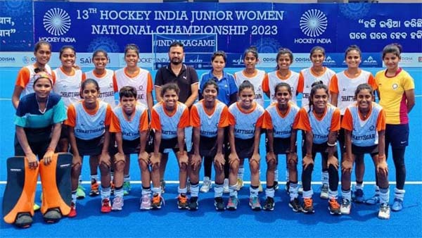 हाकी इंडिया द्वारा दिनांक 27 जून से 07 जुलाई 2023 तक राउरकेला में आयोजित कि जा रही 13वीं हाकी इंडिया जूनियर बालिका राष्ट्रीय चैम्पियनशिप में आज छत्तीसगढ़ ने अपना दूसरा मैच दादर नगर हवेली के साथ खेला जिसमे दादर नगर हवेली को 22-1 से हराया ।छत्तीसगढ़ टीम की ओर से कु आँचल साहू ने 7, गीता यादव ने 3, अनिशा साहू ने 5, संपदा निर्मलकर व मोनिका तिर्की ने 2-2 गोल, सुनीता कुमारी ,मंतेस्वरी, जानवी यादव ने 1-1, गोल किए। फारवर्ड खिलाड़ी कु. अनिशा साहू को प्लेयर ऑफ द मैच चुना गया। छत्तीसगढ़ हाकी का अगला मैच दिनांक 02 जुलाई को उत्तरप्रदेश के साथ खेला जायेगा जो क्वालीफाई मैच होगा। छत्तीसगढ़ हाकी टीम में अमिताभ मानिकपुरी कोच,व गायत्री सारथी मैनेजर के रूप में शामिल है।