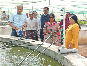 राष्ट्रीय मात्स्यिकी विकास बोर्ड कीे सीई डॉ. सुवर्णा ने सिमगा विकासखण्ड के ग्राम खेरवारी महिला स्व-सहायता समूह द्वारा बंद हो चुके खदानों में केज कल्चर विधि से किये जा रहे मछली पालन का भी अवलोकन किया। समूह द्वारा यहॉ मछली पालन के लिए 12 केज तैयार किये गए इस प्रोजेक्ट की लागत 36 लाख रूपए है। इसके लिए प्रधानमंत्री मत्स्य संपदा योजना के तहत 60 प्रतिशत और डी.एम.एफ से 40 प्रतिशत अनुदान दिया गया है। अपने प्रवास के दौरान उन्होंनें रायपुर जिले के तिल्दा विकासखण्ड के ग्राम पीकरीडीह स्थित वृहद बायोफ्लोक यूनिट का का भी अवलोकन किया। उल्लेखनीय है कि इसकी स्थापना के लिए कृषक श्रीमति अंजू मिश्रा को प्रधानमंत्री मत्स्य संपदा योजना के तहत 60 प्रतिशत राशि अनुदान मिला है इस इकाई की कुल लागत 50 लाख रूपए हैं। इस इकाई में तीलापाईया और सिंगीं मछली का पालन किया जा रहा है।