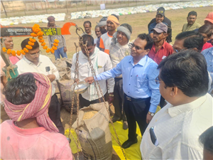 कलेक्टर पदुम सिंह एल्मा ने आज धान खरीदी के शुरुआती दिन जायजा लेने सबसे पहले बेमेतरा कृषि उपज मंडी केंद्रए पहुँचे । वहां उन्होंने स्वयं किसान का धान तौला । उसके बाद वह बेमेतरा ब्लाक के धान ख़रीदी केंद्र बीजा पहुंचे। उसके बाद बीजा, देवर बीजा, कंटेली, डूडा,मोहभट्टा, बेरला और कुसमी ( बेरला ) में पहुँचे । वहाँ उन्होंने धान खरीदी केंद्र में की गयी तैयारी का और धान ख़रीदी का निरीक्षण किया। कलेक्टर श्री एल्मा ने धान खरीदी केंद्र में किसानों की पंजीयन संख्या धान के रकबे की जानकारी बारदाने की उपलब्धता, कांटा-बांट के सत्यापन के संबंध में जानकारी ली। उन्होंने कहा कि धान खरीदी का काम ईमानदारी पूर्वक करना है। खरीदी के बाद धान को व्यवस्थित रखा जाए। उन्होंने अन्य राज्यों और कोचियों द्वारा लाए जाने वाले धान पर निगरानी रखने और कार्रवाई के निर्देश दिए। उन्होंने कहा कि यदि बाहर से धान खपाने की जानकारी मिलती है तो उसे जब्त करने की कार्रवाई की जाए। बाद में उन्होंने धान बेचने आए किसानों से बातचीत की उनका कुशलक्षेम पूछा ।