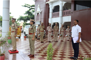 आज दिनांक 06.09.2023 को पुलिस महानिरीक्षक दुर्ग रेंज (IGP) महोदय श्री बी. एन. मीणा (भा.पु.से.) के द्वारा जिला बेमेतरा भ्रमण के दौरान रक्षित केन्द्र, थाना सिटी कोतवाली बेमेतरा, कंट्रोल रूम एवं सायबर सेल का निरीक्षण किया एवं जिले के राजपत्रित अधिकारियो, थाना/ चौकी प्रभारियो, चुनाव सेल प्रभारी की चुनाव की तैयारियों की समीक्षा बैठक ली गई। जहां उन्हे गार्ड आफ आनर दिया गया, तत्पश्चात उन्होने रक्षित केन्द्र बेमेतरा में स्टोर शाखा, शास्त्रागार, केंटीन का निरीक्षण कर साफ सफाई हेतु विशेष ध्यान रखने निर्देशित किया गया। साथ ही थाना सिटी कोतवाली बेमेतरा, कंट्रोल रूम एवं सायबर सेल का निरीक्षण कर थाना में स्थापित महिला डेस्क और सियान डेस्क को सुचारू रूप से संचालित करने, निरीक्षण के दौरान उपस्थित अधिकारी/ कर्मचारियों का मनोबल बढाये जाने के साथ कानून व सुरक्षा व्यवस्था को बनाये रखते हुए बेहतर पुलिसिंग के बारे में निर्देश दिया गया। साथ ही पुलिस जवानो को हमेशा तनाव से दूर रहने का टिप्स दिये व उनकी समस्याओं को सुनते हुए यथोचित निराकरण का आश्वासन दिया गया।