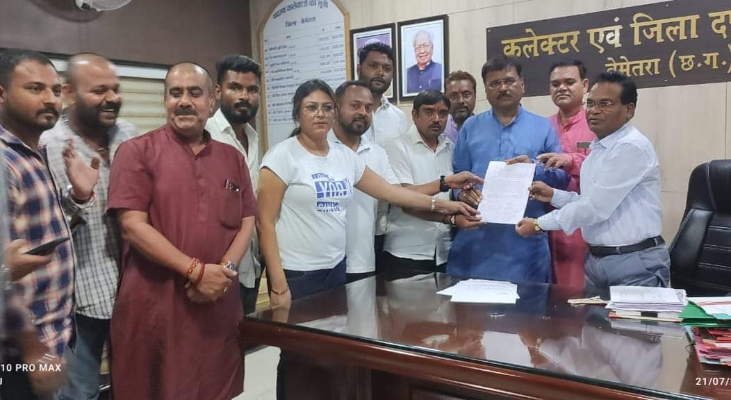 कलेक्टर श्री पी.एस. एल्मा की उपस्थिति में आज शुक्रवार को सिंघौरी चौक बेमेतरा में स्थापित भक्त माता कर्मा की प्रतिमा क्षतिग्रस्त पाए जाने के संबंध में चर्चा एवं समाधान हेतु साहू समाज बेमेतरा के पदाधिकारियों की बैठक जिला एवं पुलिस प्रशासन के अधिकारियों की उपस्थिति में कलेक्टर कक्ष में रखी गई। बैठक में साहू समाज के पदाधिकारियों के द्वारा मांग रखी गई की उनकी आराध्य भक्त माता कर्मा की मूर्ति जो क्षतिग्रस्त हो गई है, उसे हटाकर नई प्रतिमा स्थापित की जावे और जो भी इसके दोषी हैं उसके विरुद्ध अतिशीघ्र कार्यवाही की जावे।