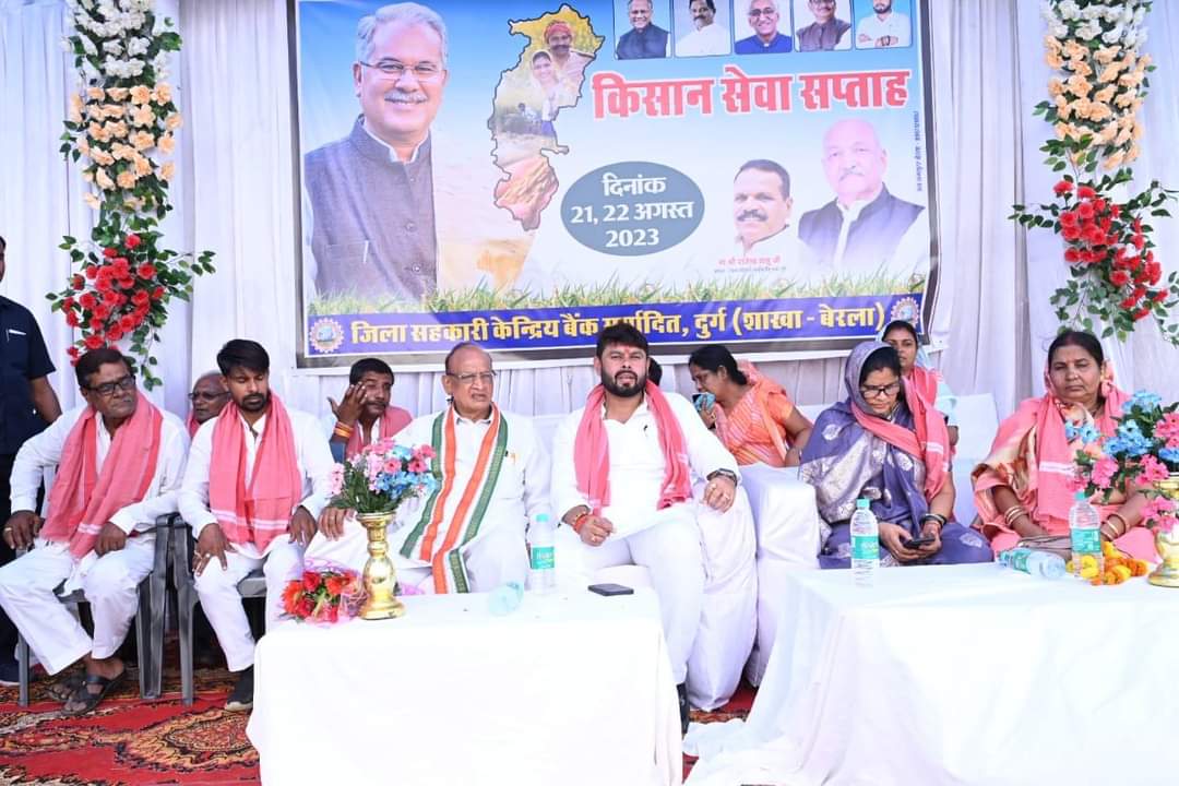स्वागत भाषण बैंक के शाखा प्रबंधक अशोक ढोबले ने दिया वही सभा को पूर्व जनपद अध्यक्ष ओमप्रकाश वर्मा,डेनिस यादव,राजेश शर्मा ने संबोधित करते हुए कहा की छत्तीसगढ़ की कांग्रेस नीत भूपेश बघेल रविंद्र चौबे की सरकार किसान हितैषी सरकार है इस सरकार ने पूरे 5 वर्ष जो कार्य कृषि और किसानों के लिए किया उससे किसान के जीवन सुख और खुशहाली आई है सरकार की समस्त योजनाओं का प्रत्यक्ष लाभ आम जनता गांव गरीब तक पहुंच रहा अब फिर समय आ गया है की हम पूरी मजबूती के साथ इस सरकार को फिर से छत्तीसगढ़ की बागडोर सौप कर जनसेवा का पुनः अवसर दे।