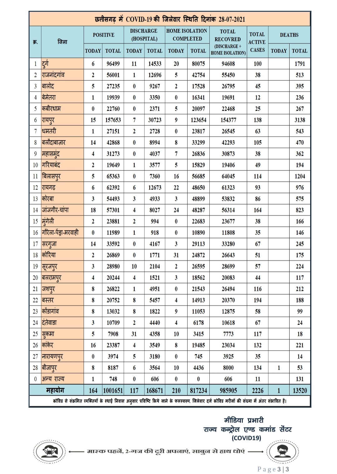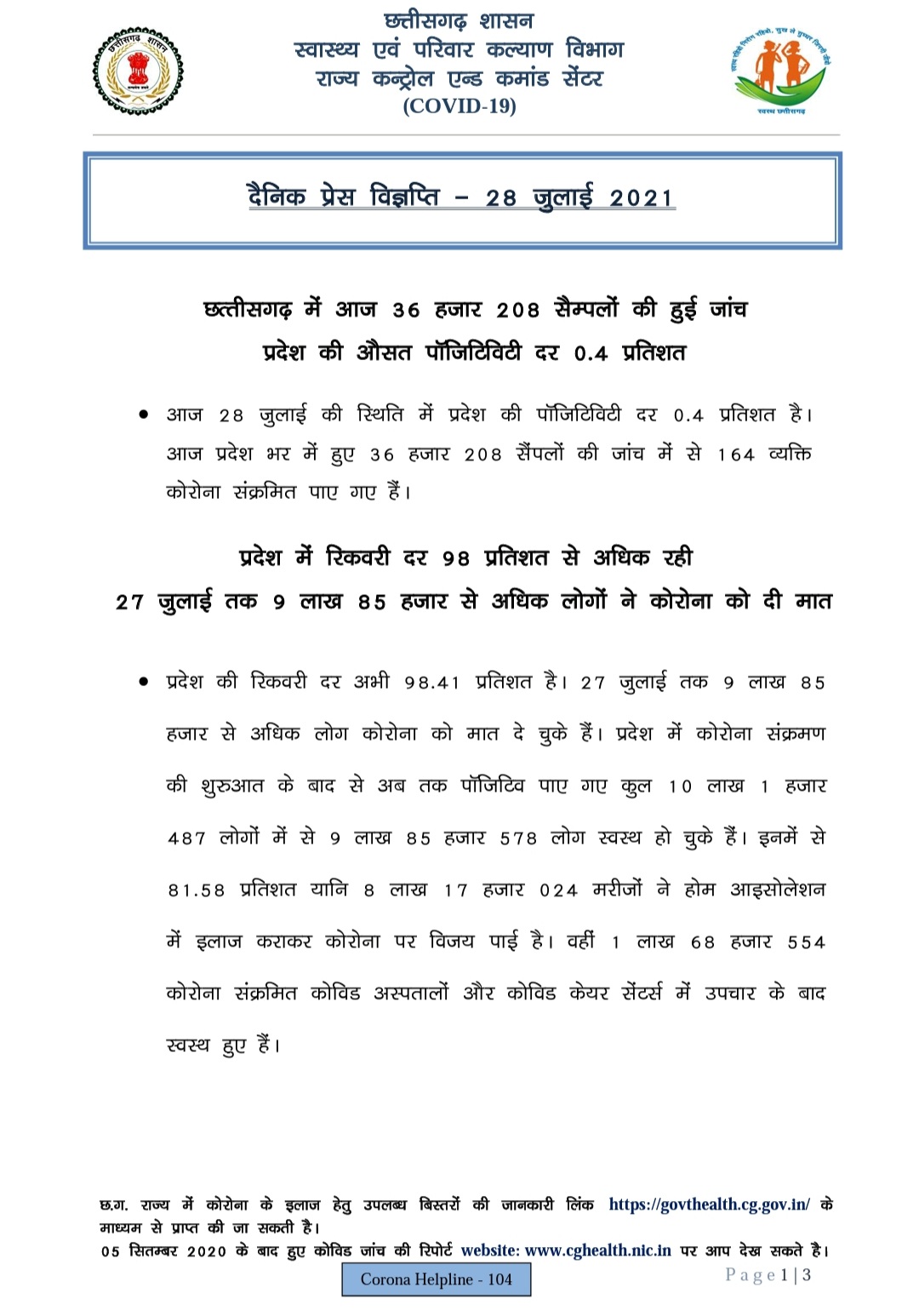 छत्तीसगढ़ प्रदेश : 27/Jul/2021