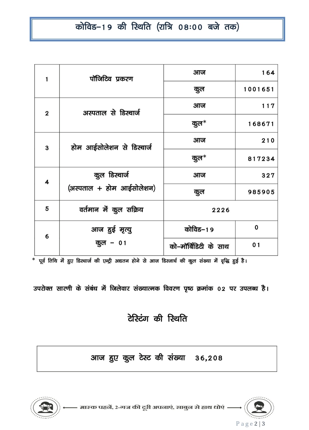 राज्य में आज रात 09.00 बजे तक 164 कोरोना पॉजिटिव मिले हैं। इनमें सबसे अधिक 18 जांजगीर-चांपा जिले से हैं। राज्य के स्वास्थ्य विभाग के इन आंकड़ों के मुताबिक आज रात तक किसी भी जिले में 25 से अधिक कोरोना पॉजिटिव नहीं मिले हैं।